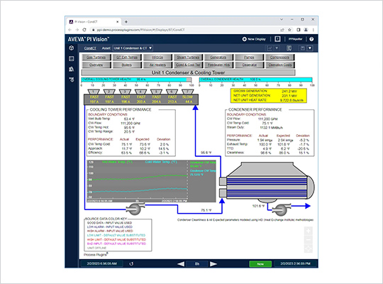 This PI System plugin module helps identify problems with condenser operations or physical condition that may have a substantial impact on the plant heat rate. The condenser model predicts pressure, temperature difference (TTD), and cleanliness. It compares these parameters in real-time to the corresponding actual conditions.