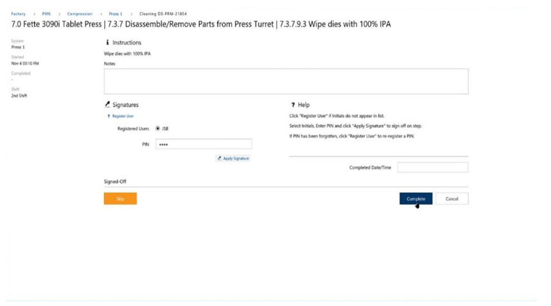 Streamline batch records creation. Utilize badge scanning or pin numbers for operator verification. Comply with regulatory requirements. Provide 21 CFR Part 11 electronic signatures, with a full audit trail of batch activity.