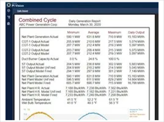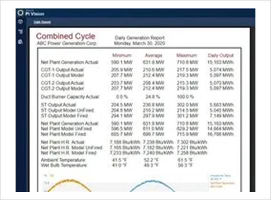 This PI System plugin identifies opportunities for immediate savings by comparing operational parameters to expected values. It calculates and displays the corresponding effects (in $/hour) on unit heat rate (or efficiency) and fuel costs/savings in real time. Operators can customize manufacturer design curves upon installation and can easily adjust them anytime afterward. Parameters include GT Inlet Filter Pressure Drop, GT Inlet Temperature, Compressor Section Efficiency and Cleanliness, Exhaust Temperature, HRSG Efficiency, and Condenser Pressure.