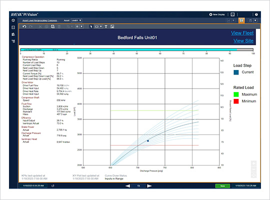This tool makes it easy to identify compressor problems early. It calculates discharge pressure, work (brake horsepower), and both isentropic efficiency and polytropic efficiency then plots them against scalable, dynamic reference curves that adjust with compressor speed. The visualization graphic makes it easy to compare real-time performance with the reference curves to quickly identify performance issues.